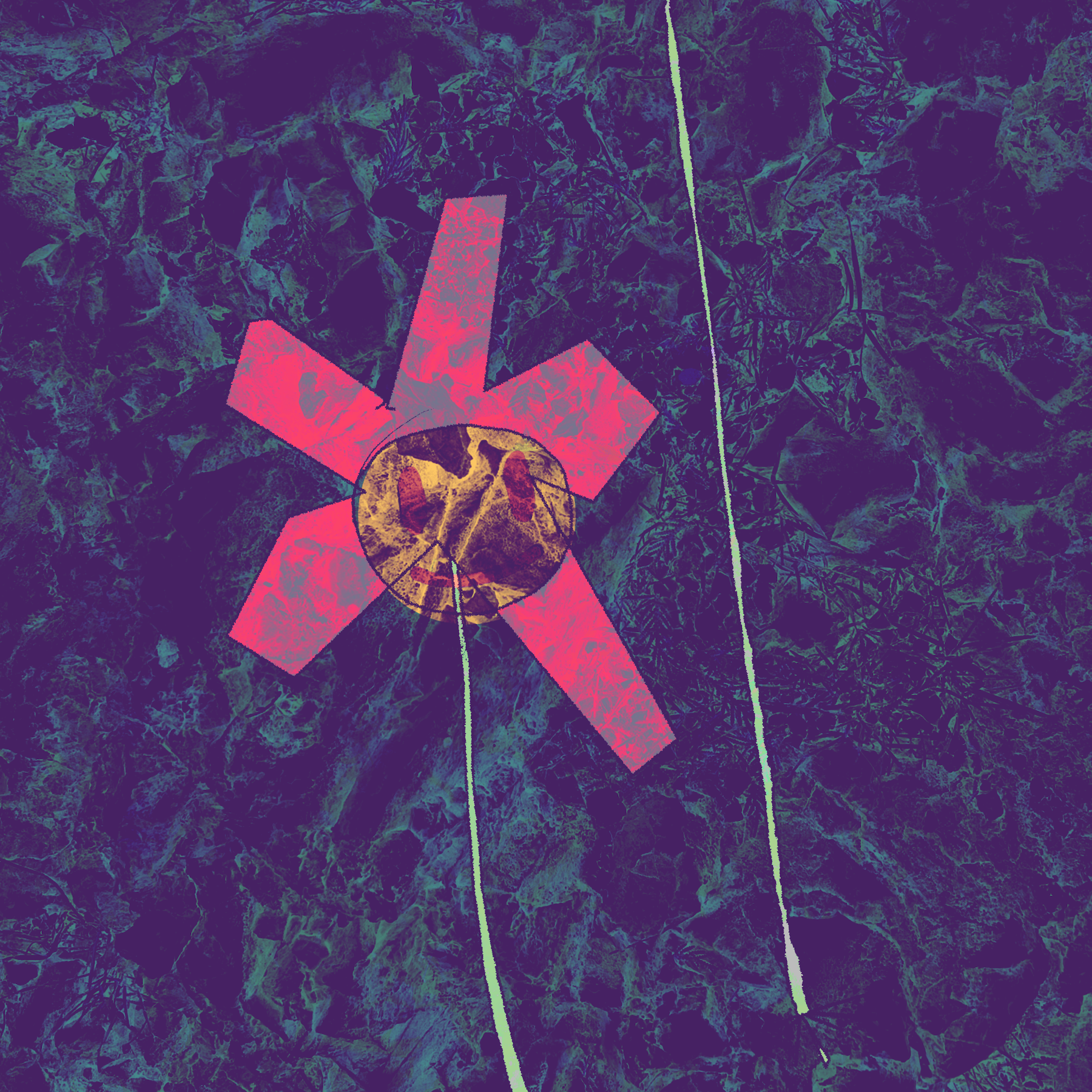 the first two images were made with lil pictures of flowers i drew on a tablet compiled with textures i found on the ground in nature. the third image is a portrait of me taken by chut at a new years party that came as quick as went, compiled with an image i took of a piece of plastic that seemed like it held a secret of the universe - but when i looked closer i found out that it was just plastic.
