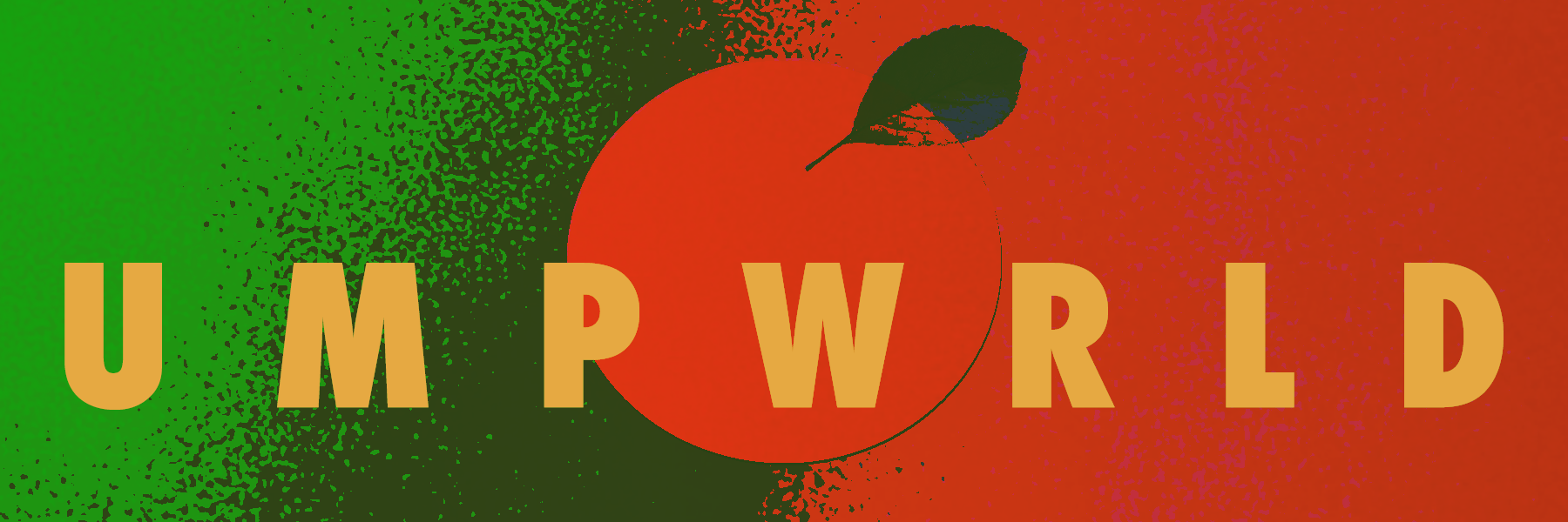 Here's a logo and some Futura font for UMPWRLD. UMWPRLD is a shadow of the real world. UMPWRLD is a warm-light in a tunnel with moss hanging down dripping drops of street-juice on to your neck while you walk through. UMPWRLD is the micro-fiber-hankerchief you wipe your neck with, on your way out of the tunnel. UMPWRLD is about apples, but at the same time - its not. UMPWRLD is an attempt at "art", but it tries its darndest to be honest. UMPWRLD shows up to the costume party dressed as mayonnaise and brings spaghetti with meatb*lls. If you try to dance with UMPWRLD, UMPWRLD will indeed start waltzing, 123.